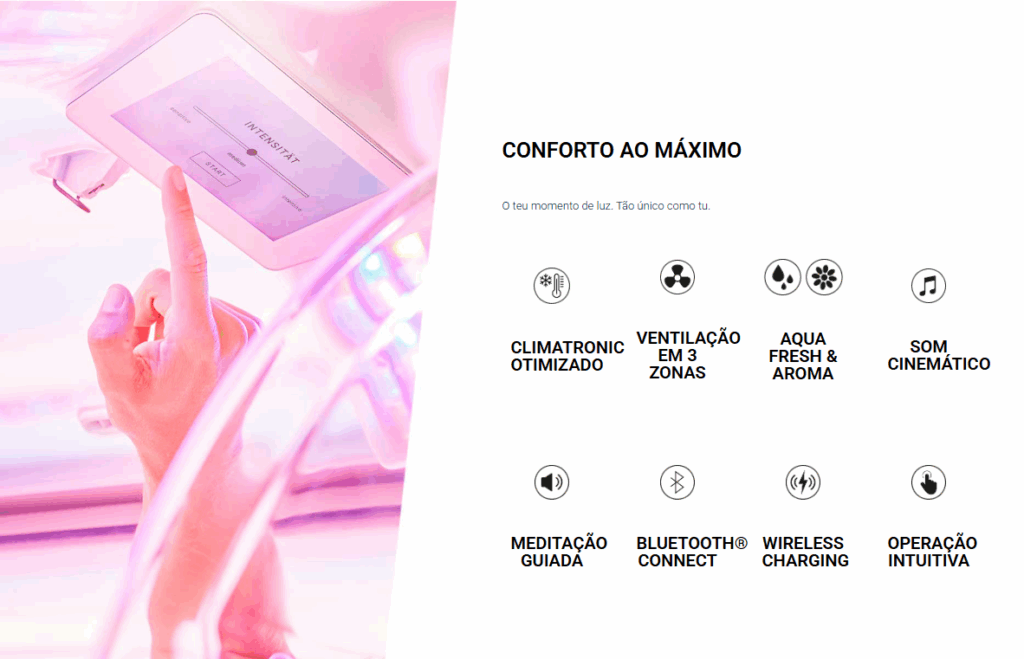 Combina o poder de cuidado da pele da luz vermelha Beauty Light com o efeito calmante da luz verde Nature Light. Para um bronzeado bonito, natural e uma sensação de bem-estar.